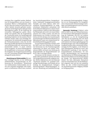 Der Nationale Aktionsplan Energieeffizienz (NAPE), verabschiedet am 3. Dezember, zielt darauf ab, die Energieeffizienz in Deutschland zu steigern, insbesondere im Gebäudesektor, der 40 % des Endenergieverbrauchs ausmacht. Er beinhaltet Maßnahmen zur CO2-Reduktion und zur Einsparung von Energiekosten sowie die Einführung wettbewerblicher Ausschreibungen zur Verbesserung der Stromeffizienz. Bis 2020 sollen erhebliche Investitionen und Einsparungen erreicht werden, während die Gleichstellung von Stadtwerken mit anderen Dienstleistern in der Energieberatung weiterhin offenbleibt.