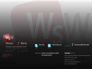 Das Dokument beschreibt, wie moderne Genossenschaften durch Web 2.0 und Open Innovation Kunden in die Produktentwicklung einbeziehen und somit bessere Produkte schaffen können. Durch die Nutzung von Online-Plattformen und Communitys können Kundenideen gesammelt und in den Entwicklungsprozess integriert werden, was die Bindung der Kunden erhöht. Zudem wird auf die Bedeutung von Bildung und Financial Literacy hingewiesen, um verschiedene Zielgruppen anzusprechen und in den Wissensprozess einzubinden.