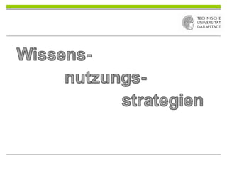 Das Dokument beschreibt drei wichtige Wissensnutzungsstrategien für die Prüfungsvorbereitung: Texte schreiben, diskutieren und argumentieren sowie Probleme lösen. Diese Strategien helfen, sich mit den Themen vertraut zu machen, Argumente zu entwickeln und die Fähigkeit zu verbessern, in prüfungsähnlichen Situationen zu handeln. Insgesamt betont das Dokument die Bedeutung von aktivem Lernen zur effektiven Nutzung des erlernten Wissens.