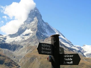 Das Dokument enthält Bilder und Informationen über verschiedene Sehenswürdigkeiten und Bahnen in der Schweiz, einschließlich der Gornergratbahn, Jungfraubahn und Matterhorn in Zermatt. Es erwähnt auch weitere Orte wie Grindelwald, Lauterbrunnen und Schynige Platte. Die Inhalte scheinen von einer Präsentation oder einem Bericht über diese touristischen Attraktionen zu stammen.