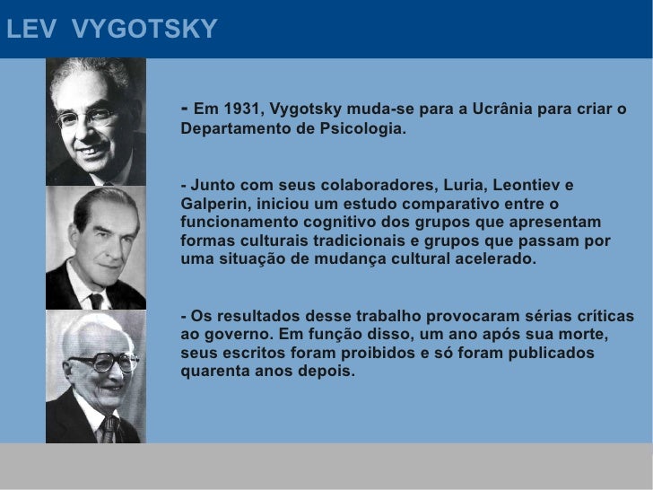 TEORIA SÓCIO-HISTÓRICA LEV VYGOTSKY 1896/1934
