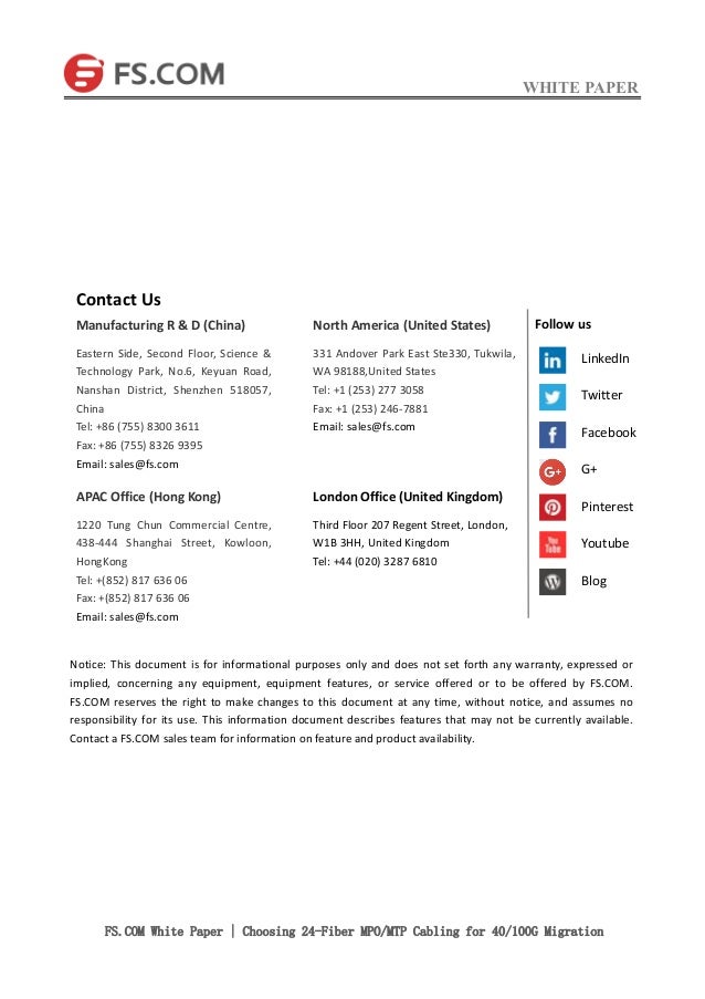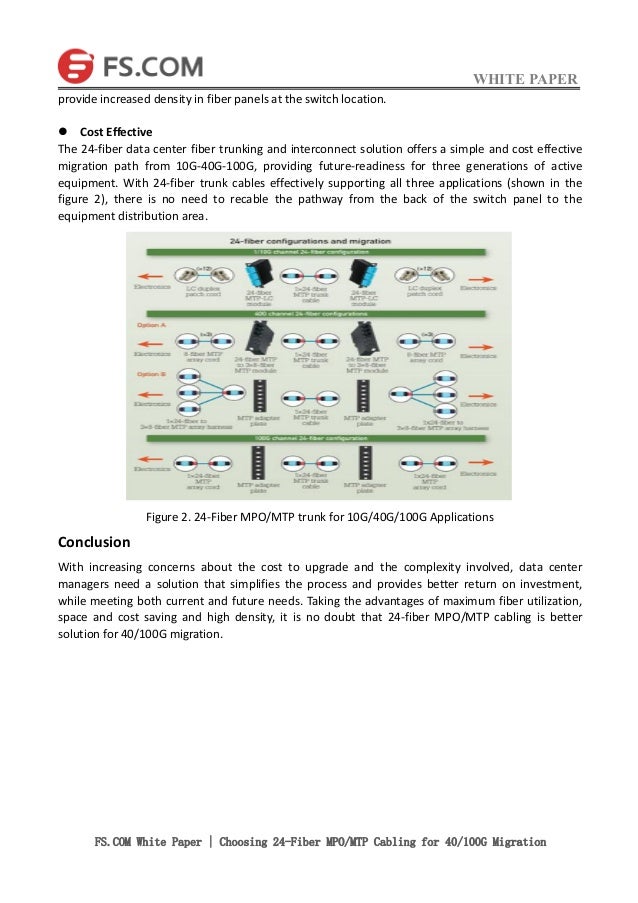 Running 40G requires 8 fibers, with 4 fibers each transmitting at 10Gbit/s and 4 fibers each receiving at 10Gbit/s. Running 100G requires a total of 20 fibers, with 10 transmitting at 10Gbit/s and 10 receiving at 10Gbit/s. Both scenarios call for high-density MPO-style connectors, which can be either 12-fiber or 24-fiber. However, 24-fiber MPO/MTP cabling is often considered to be the better solution for 40/100G migration. Why? Reading this post and you will get the reasons.
