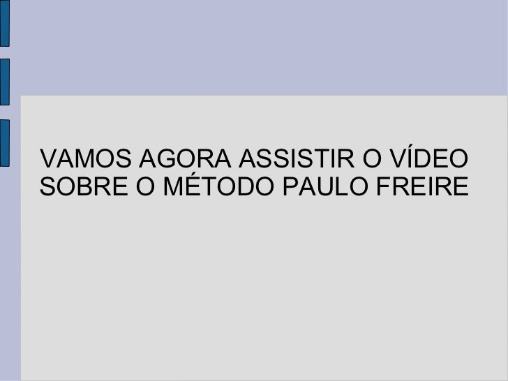VAMOS AGORA ASSISTIR O VÍDEO SOBRE O MÉTODO PAULO FREIRE