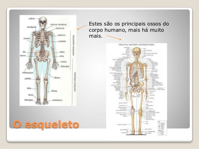 2. 2. O esqueleto  Ao conjunto de ossos chama-se esqueleto, que serve para sustentar o corpo e apoiar os músculos. Há alguns conjuntos de ossos que servem para proteger orgãos como o crânio.
