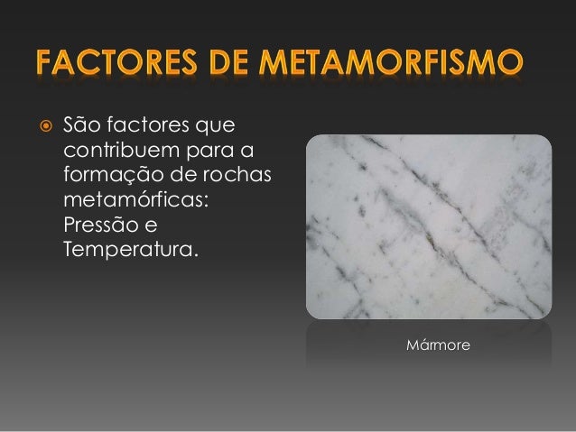 2. 2.  São factores que contribuem para a formação de rochas metamórficas: Pressão e Temperatura. Mármore