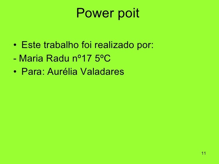 11. 11. Power poit <ul><li>Este trabalho foi realizado por: </li></ul><ul><li>- Maria Radu nº17 5ºC </li></ul><ul><li>Para: Aurélia Valadares </li></ul>