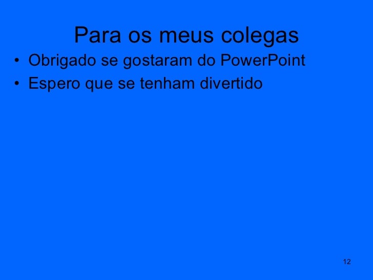 12. 12. Para os meus colegas <ul><li>Obrigado se gostaram do PowerPoint </li></ul><ul><li>Espero que se tenham divertido </li></ul>