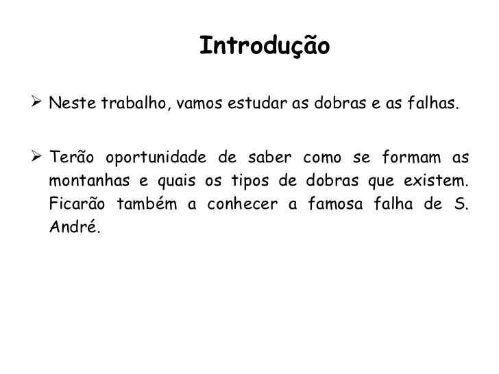 3. 3. <ul><li>Neste trabalho, vamos estudar as dobras e as falhas. </li></ul><ul><li>Terão oportunidade de saber como se formam as montanhas e quais os tipos de dobras que existem. Ficarão também a conhecer a famosa falha de S. André. </li></ul>Introdução