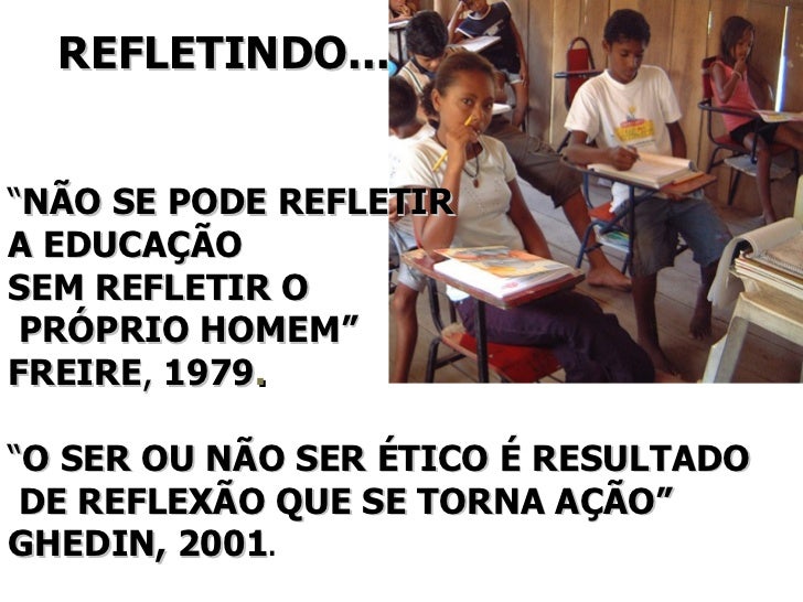 REFLETINDO...... “ NÃO SE PODE REFLETIR  A EDUCAÇÃO  SEM REFLETIR O PRÓPRIO HOMEM”  FREIRE ,  1979 . “ O SER OU NÃO SER ÉT...